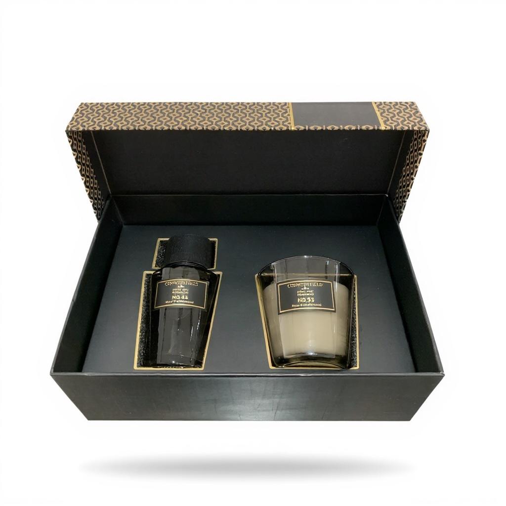 Countryfield Raumduft NO. 55 – ein eleganter Begleiter für Ihr Zuhause. Die wunderschöne Glasflacon und Duftkerze im Hotel-Chic-Design verleiht jedem Raum Luxus und Raffinesse. Mit seiner ausgewogenen Duftnote aus warmem Sandelholz und feinen Blüten schafft dieser Raumduft eine einladende, entspannende Atmosphäre. Perfekt für alle, die Wert auf hochwertige Düfte und stilvolles Interieur legen. 100 ml + 100 gr
