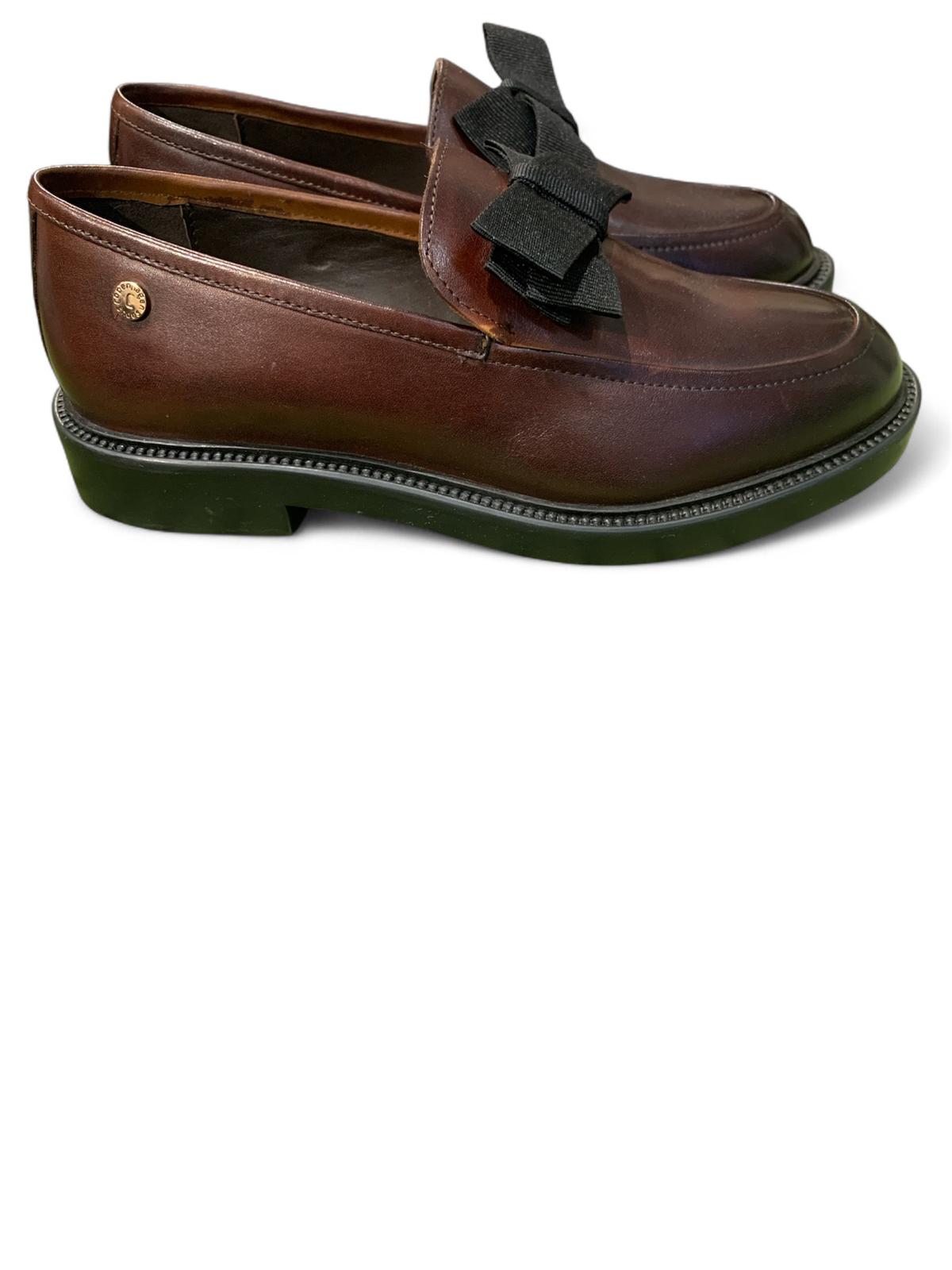 Diese Damen Loafer aus braunem Leder verbinden zeitlose Eleganz mit modernem Komfort. Die markanten schwarzen Schleifen setzen einen stilvollen Akzent...