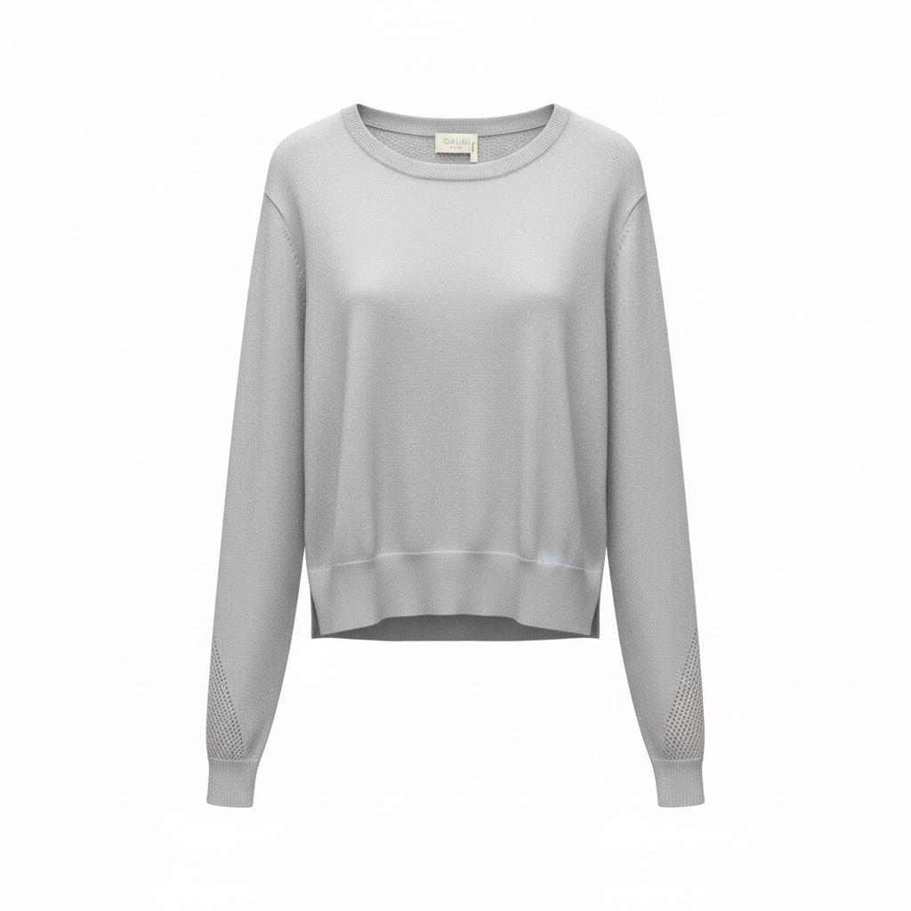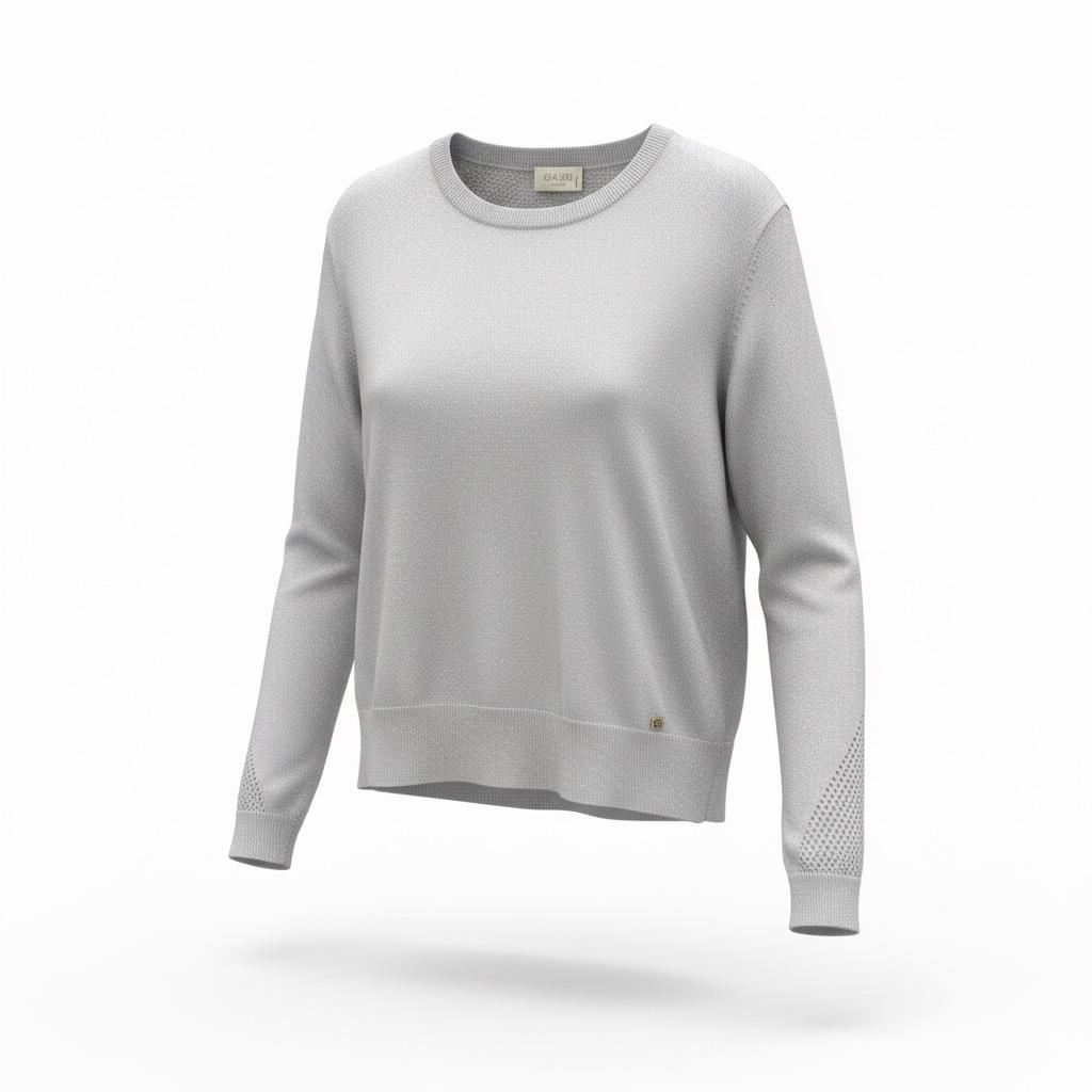 Dieser elegante Damenpullover von GAUDI Jeans besticht durch sein modernes und zeitloses Design in Grau mit dezent schimmerndem Silber-Lurex. Das angenehm zu tragende, gestrickte Material aus Polyester, Viskose und Polyamid sorgt für Komfort, während das attraktive Lochmuster an Ärmeln und Rücken raffinierte Akzente setzt. Ein vielseitiges Kleidungsstück, das sowohl im Büro als auch in der Freizeit stilvoll überzeugt.