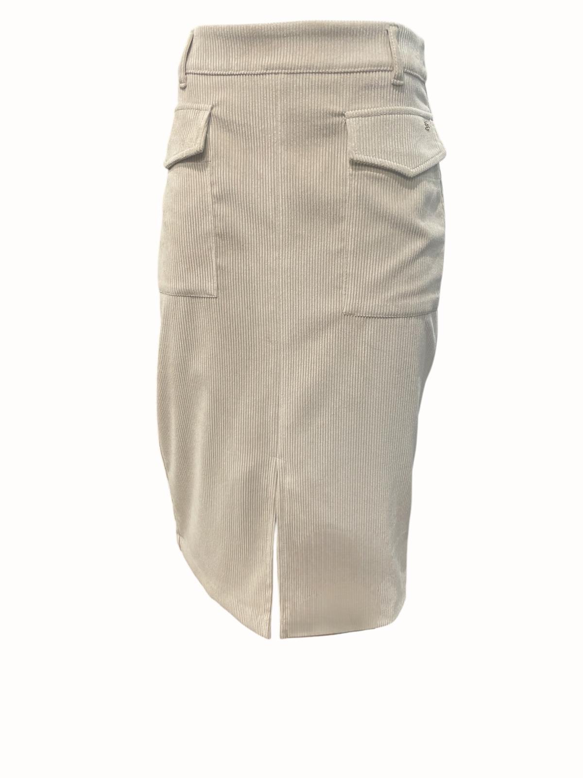 Eleganter Cordrock in Beige von Gaudi Jeans mit zeitlosem Design. Der knielange Rock besticht durch seinen ausgezeichneten Schnitt und moderne Eleganz. Praktische Vordertaschen und ein zentraler Schlitz sorgen für Bewegungsfreiheit und Komfort. Ein vielseitiges Piece für den anspruchsvollen Kleiderschrank – perfekt kombinierbar zu verschiedenen Outfits.