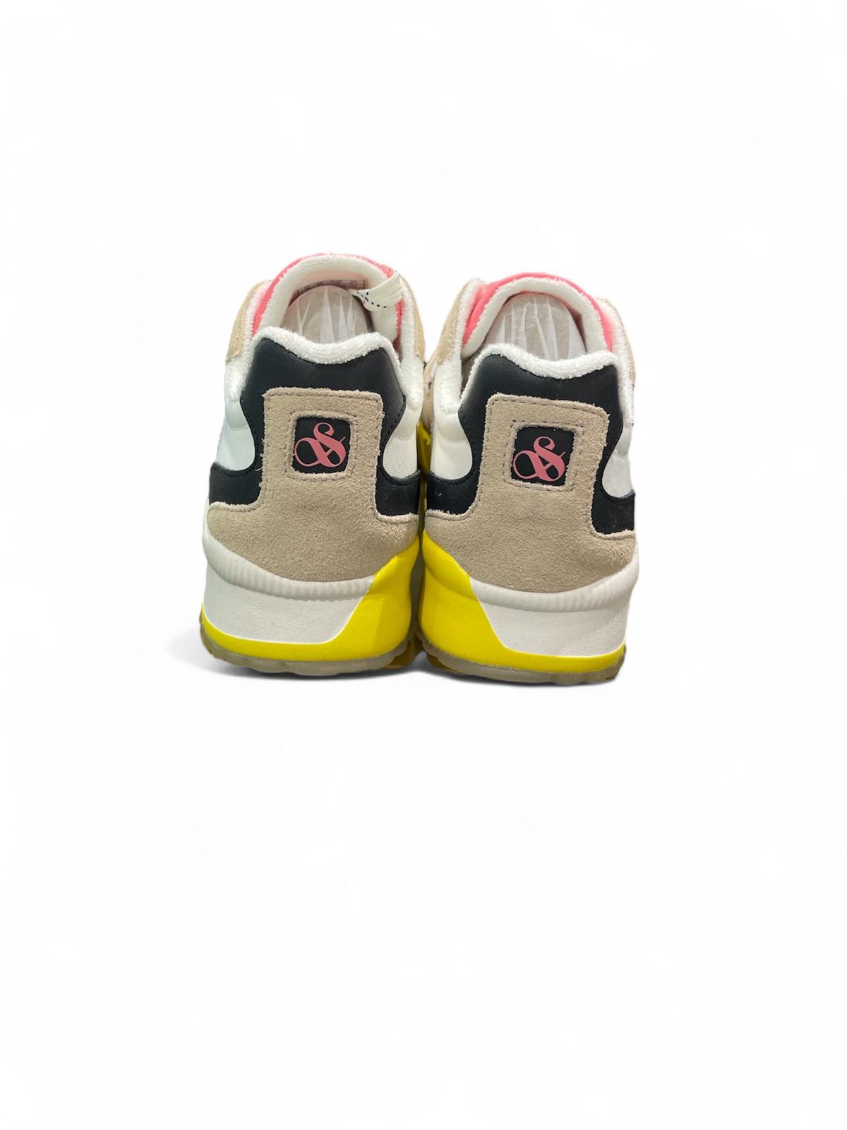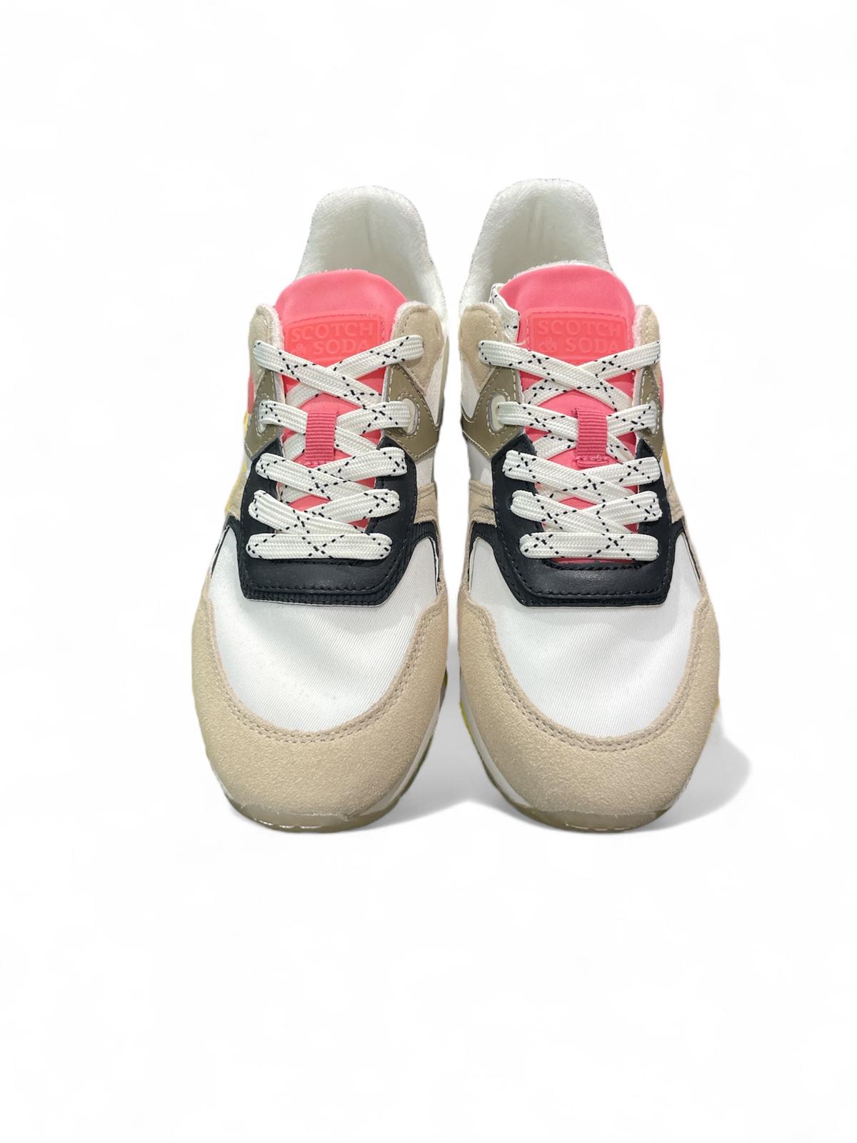 Diese Damen-Sneakers von Scotch & Soda verbinden hochwertiges Leder mit vielseitigem Textilmaterial und präsentieren sich in einem stilvollen Off-White-Multiton. Das ausgewählte Materialmix garantiert angenehmen Tragekomfort und Langlebigkeit, während das dezente Farbschema sich problemlos zu verschiedenen Outfits kombinieren lässt. Ideal für modebewusste Frauen, die Wert auf eine gelungene Balance aus Design und Funktionalität legen.