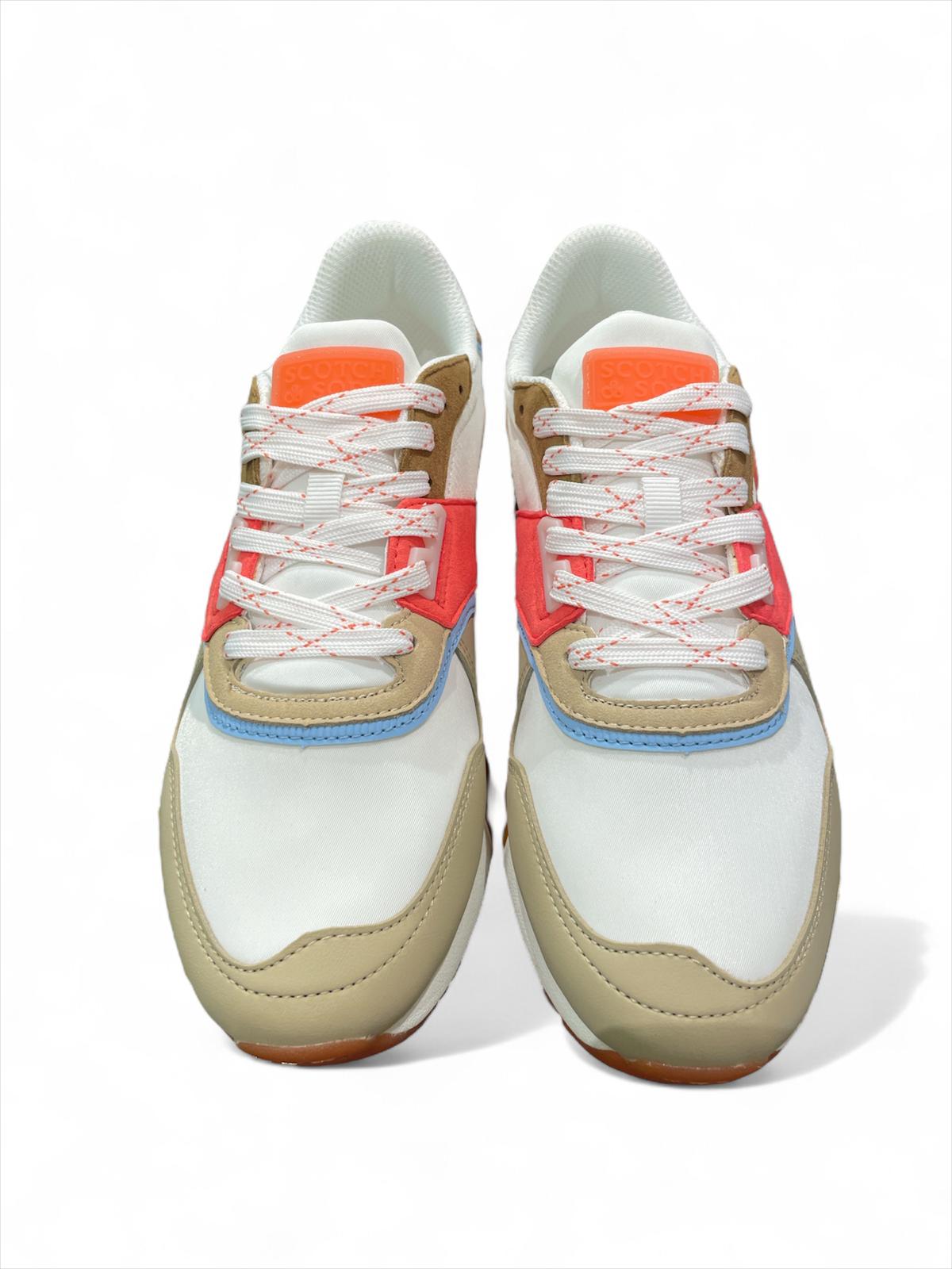 Diese Damen Sneakers von Scotch & Soda vereinen hochwertiges Leder und atmungsaktives Stoffmaterial in einem modernen Sand-Multi-Design. Die Kombination gewährleistet Komfort und Langlebigkeit, während das stilvolle Farbspiel vielseitig kombinierbar ist. Perfekt für modebewusste Frauen, die Wert auf Qualität und Funktionalität legen.