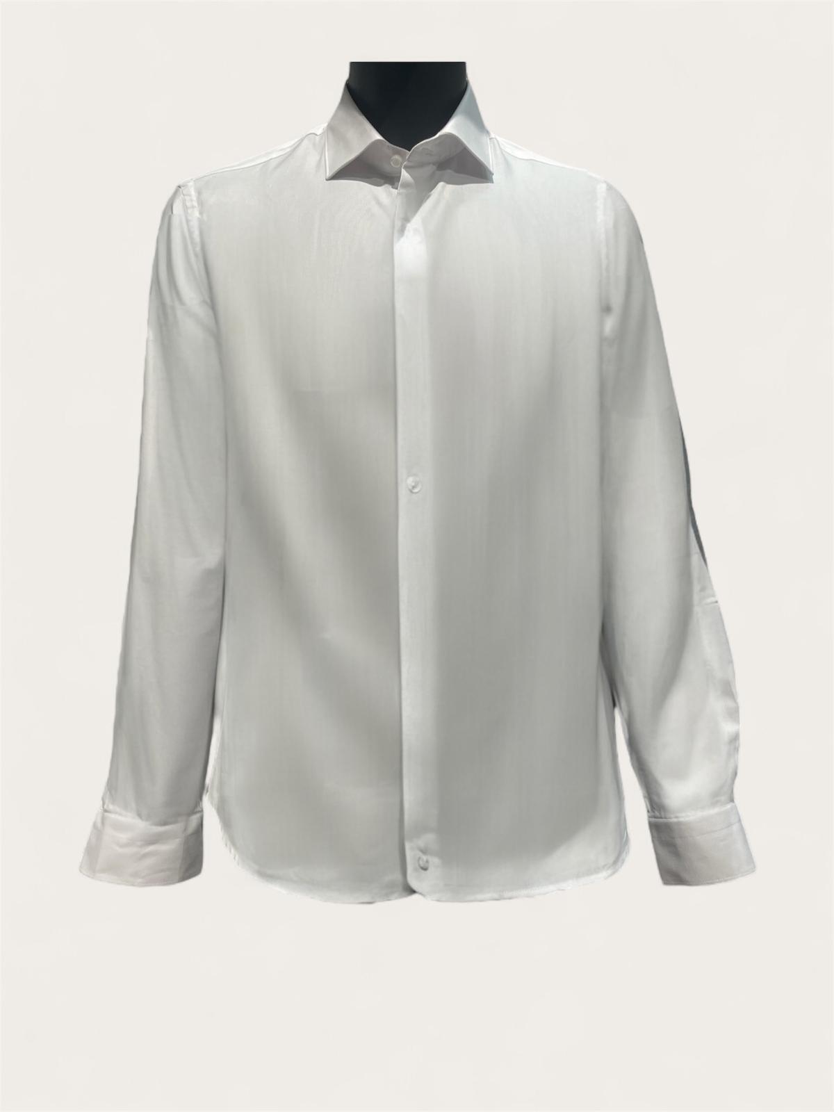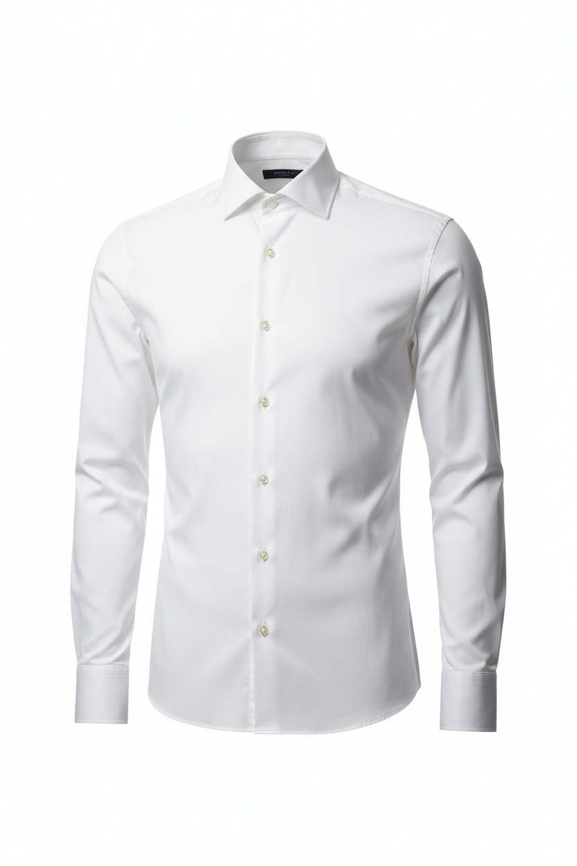 Raffiniertes Herrenhemd in klassischem Weiß mit charakteristischem Haifischkragen und zeitgenössischer Webstruktur. Die Slim-Fit-Schnittführung mit subtiler Taillierung unterstreicht eine moderne Silhouette, ohne dabei auf zeitlose Eleganz zu verzichten. Das hochwertig verarbeitete Hemd aus besticht durch seine Vielseitigkeit – sowohl im Business als auch im gehobenen Casual-Bereich ein zuverlässiger Begleiter für den anspruchsvollen Mann. Made in Italy.