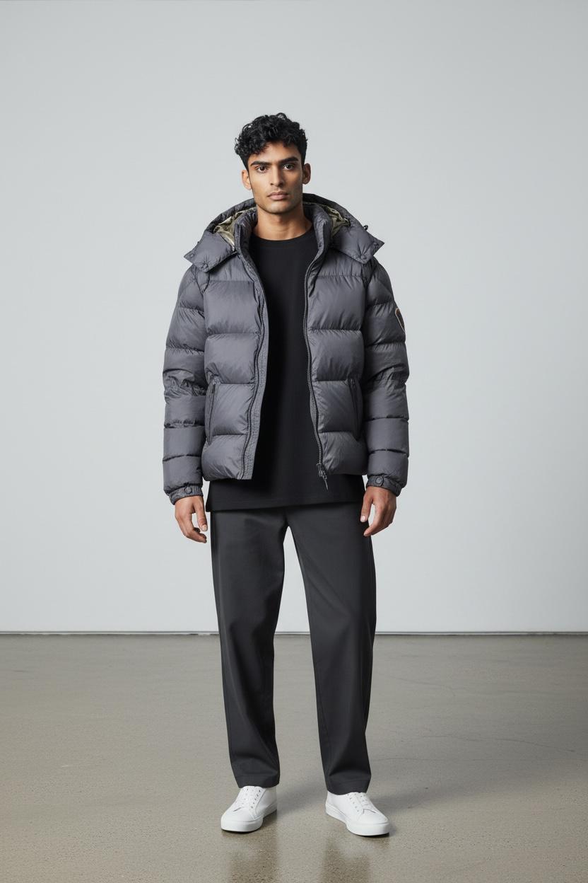 Die angesagte Herrenjacke von 19V69 Italy verbindet zeitloses Design mit funktionaler Wärmeleistung. Das klassische schwarze Obermaterial aus Polyester wird durch ein olivgrünes Innenfutter veredelt und besticht durch die charakteristische Steppung, die nicht nur optisch überzeugt, sondern auch optimale Isolierung bietet. Die abnehmbare Kapuze ermöglicht flexible Trageoptionen, während das aufgenähte Bären-Logo und das diskrete Ärmel-Branding die Markenidentität unterstreichen. Die hochwertige Polyester-Füllung garantiert außergewöhnliche Wärmeleistung bei gleichzeitiger Winddichtheit – ideal für kühle Jahreszeiten. Praktisch und pflegeleicht: die Jacke ist maschinenwaschbar und behält ihre Form und Funktionalität über lange Zeit.