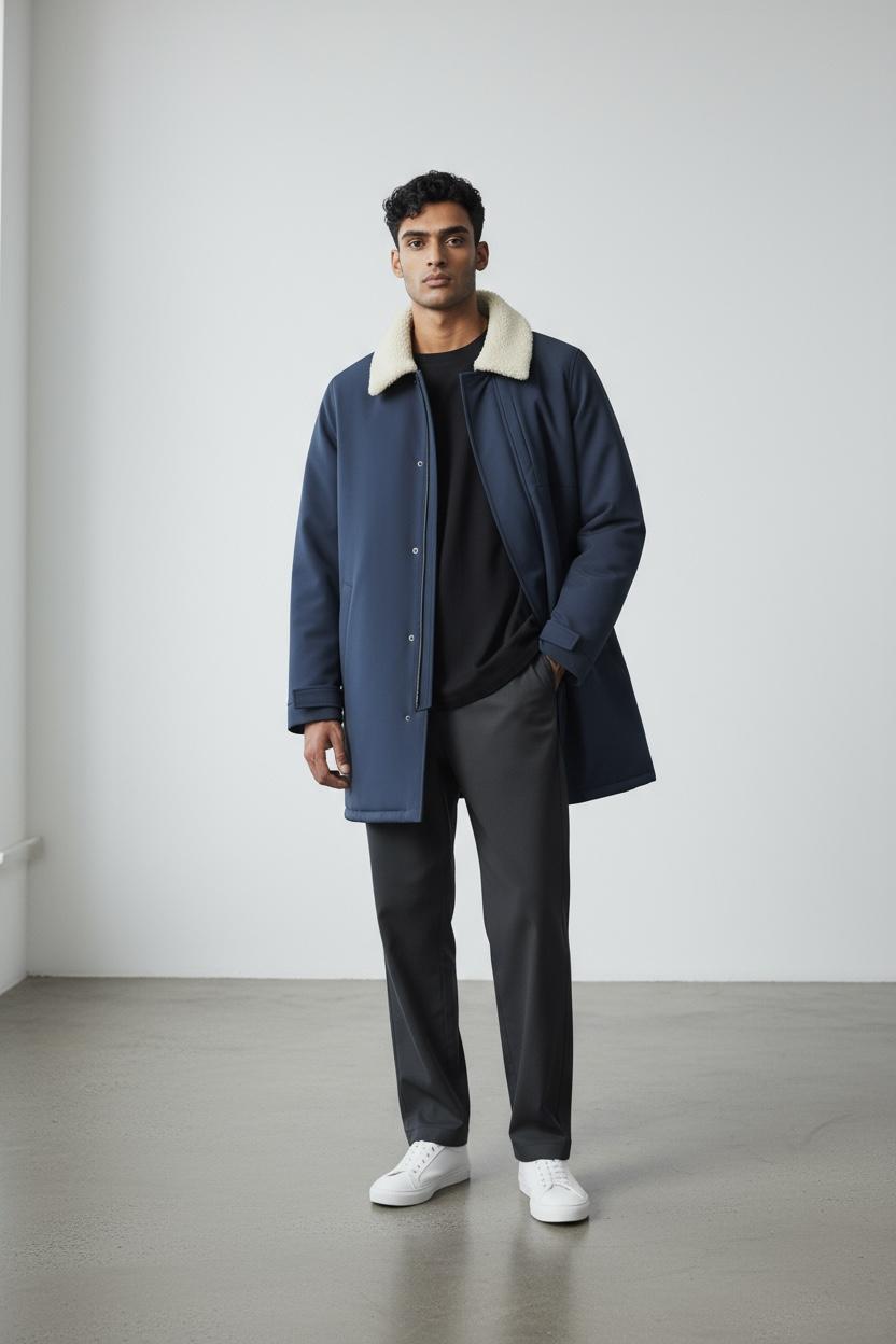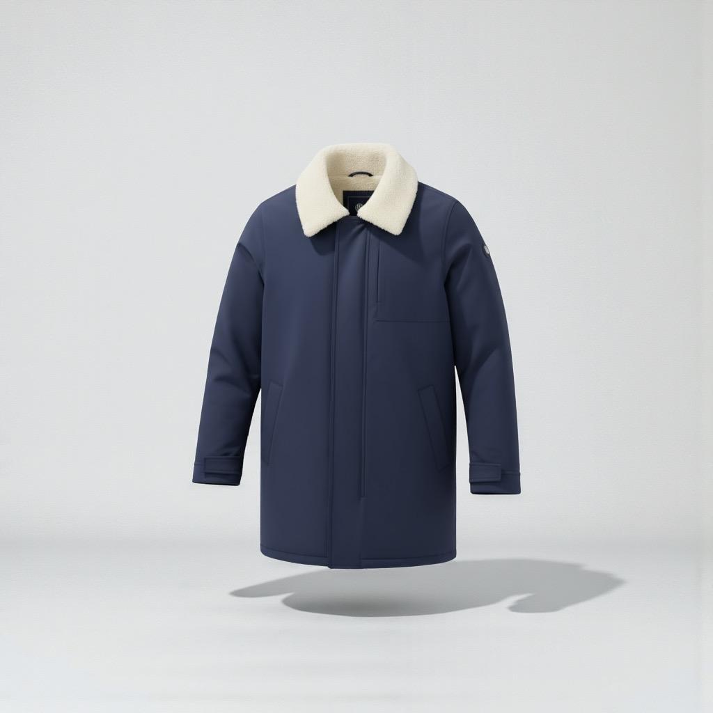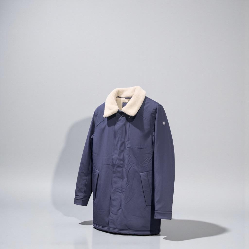 Herrenmantel mit wasserabweisendem Finish Dieser italienische Herrenmantel verbindet klassische Eleganz mit praktischer Funktionalität. Das wasserabweisende Material schützt zuverlässig vor Nässe, während der abnehmbare Pelzkragen für flexible Styling-Optionen sorgt. In tiefem Blau gehalten, präsentiert sich das Stück zeitlos und vielseitig kombinierbar. Die hochwertige Verarbeitung aus italienischer Produktion garantiert Langlebigkeit und Komfort. Ein unverzichtbares Piece für den anspruchsvollen Herrengarderobe.