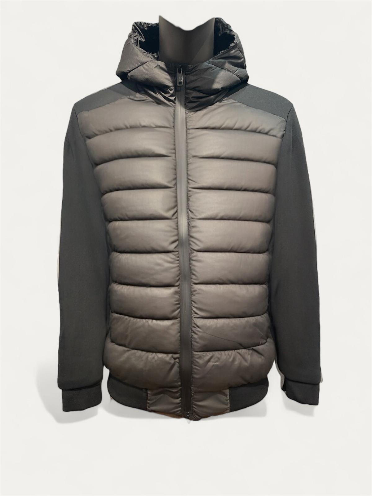 Elegante Herrenjacke in klassischem Schwarz mit sportlichem Design. Die hochwertige Verarbeitung verbindet Raffinesse mit Funktionalität – perfekt für anspruchsvolle Männer, die Wert auf zeitlose Eleganz legen. Die Kapuze und die gesteppte Vorderseite verleihen dem Piece eine moderne Silhouette, während die durchdachten Details für Komfort und Stil sorgen. Ein vielseitiges Kleidungsstück für jeden Anlass.