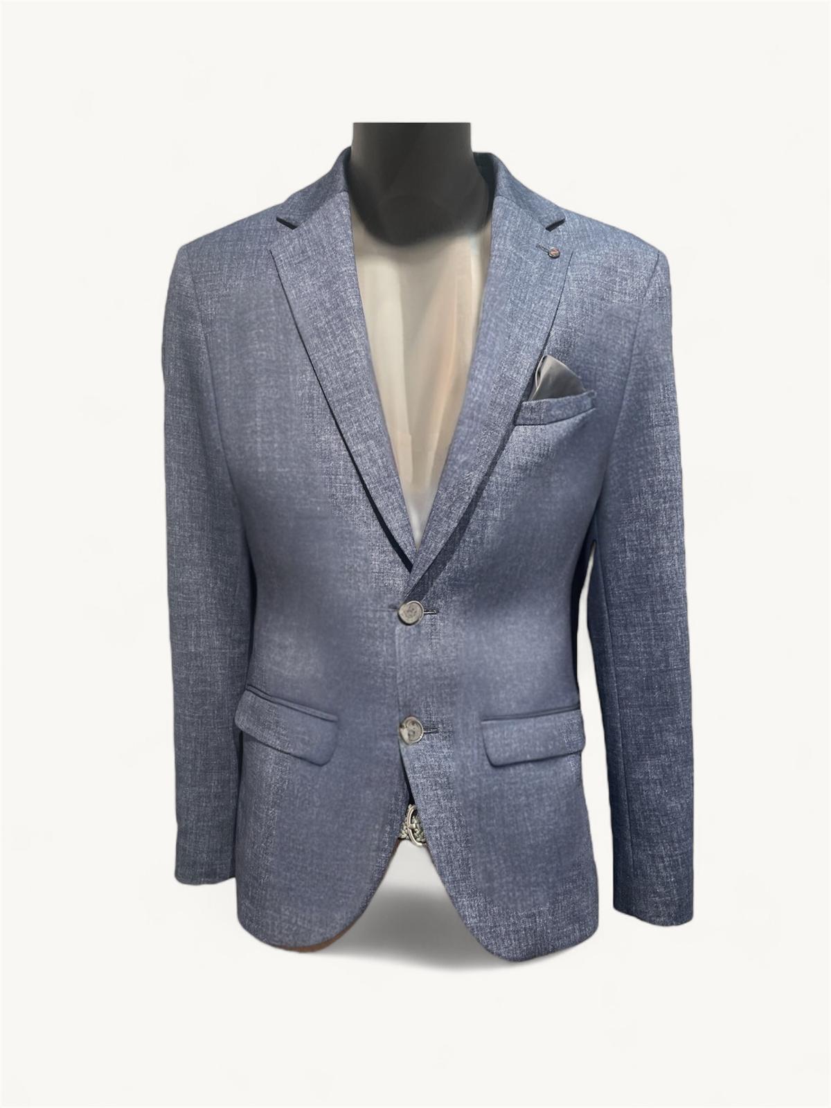 Modernes Herrensakko in klassischem Blau mit zeitloser Eleganz. Das einreihige Design mit Reverskragen besticht durch seinen zweifarbig gewebten Stoff und moderne Struktur – perfekt für anspruchsvolle Anlässe. Die Brusttasche mit Einstecktuch verleiht dem Sakko einen raffinierten Touch, während das schwarze Innenfutter für hochwertige Verarbeitung spricht. Vielseitig kombinierbar zwischen klassisch und sportlich – ein unverzichtbares Piece für den modernen Gentleman.