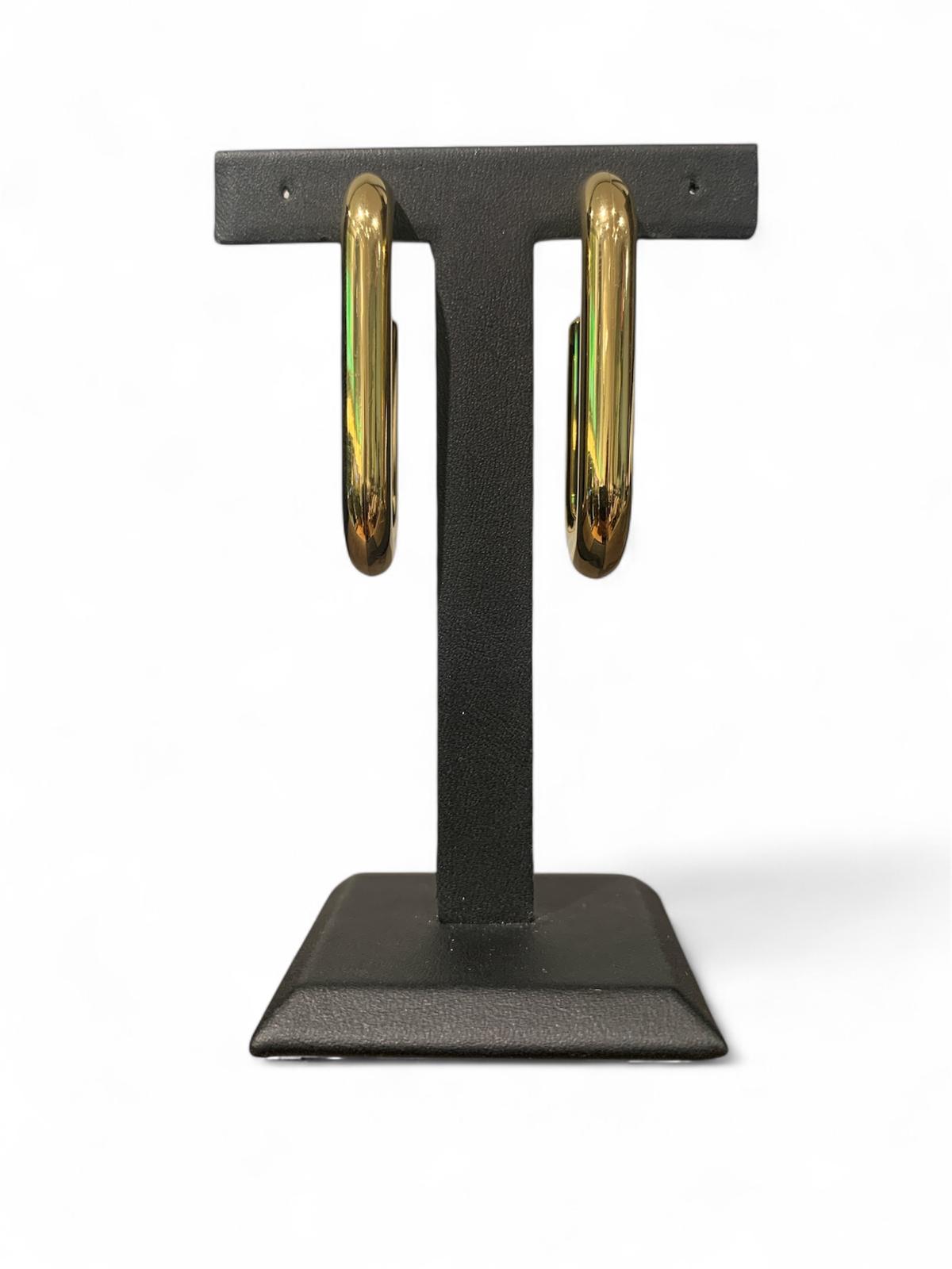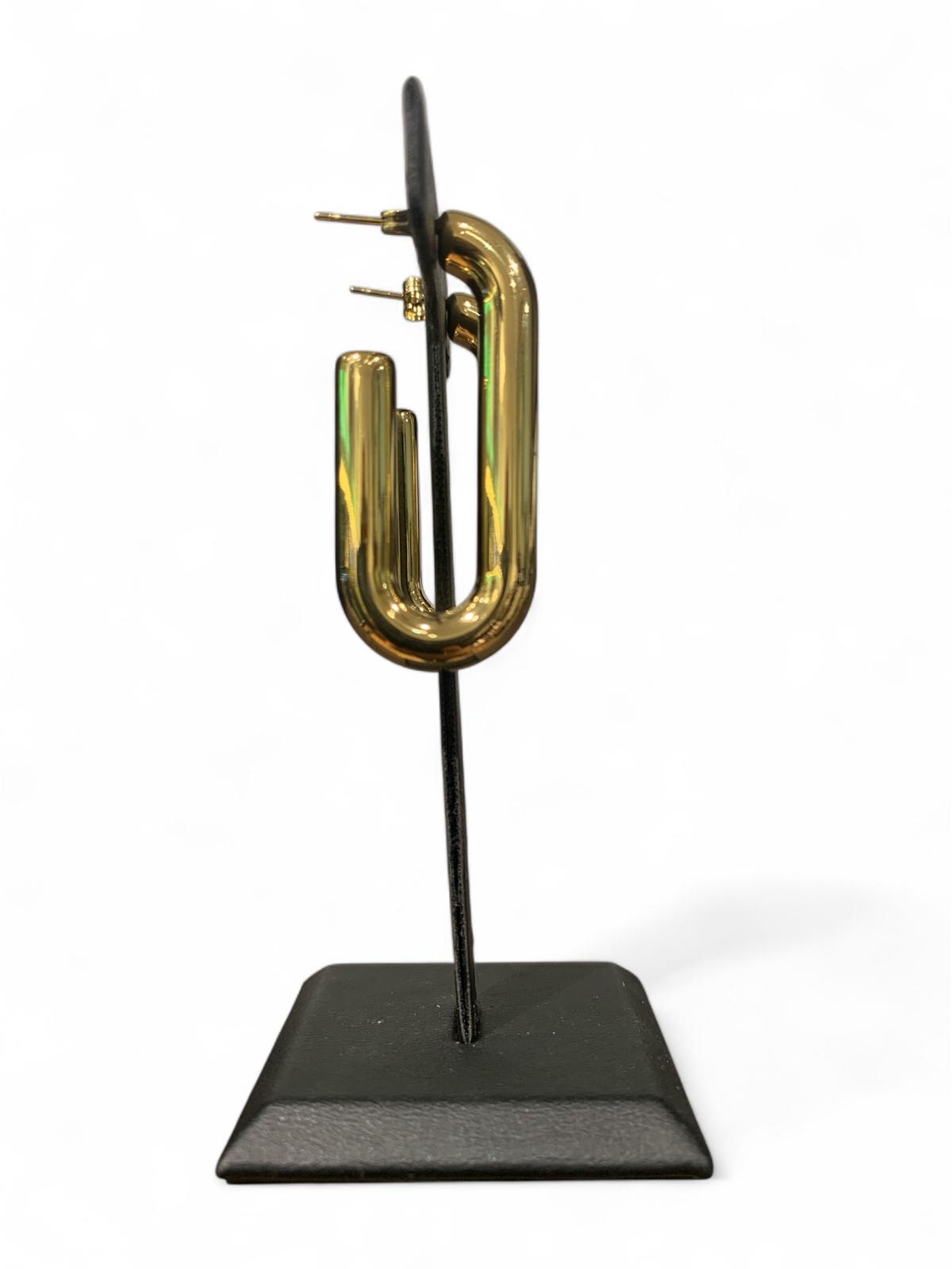 Diese geometrischen Creolen von Day & Eve verbinden zeitlose Eleganz mit modernem Design. In edlem Goldton gehalten, sind sie aus leichtem Modeschmuck gefertigt und bieten hohen Tragekomfort. Mit einer Länge von 4,5 cm und einem klassischen Verschluss setzen sie dezente, aber markante Akzente zu jedem Outfit – ein stilvolles Accessoire für anspruchsvolle Looks.