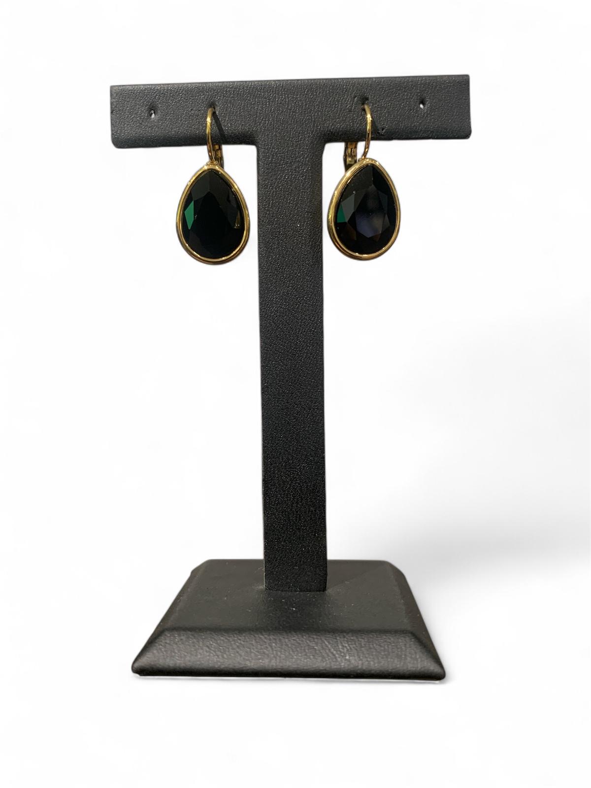 Diese eleganten Ohrringe verbinden zeitlose Ästhetik mit modernem Design. Die tropfenförmigen schwarzen Steine im Diamantschliff sind schlicht und doch auffällig, meisterhaft in feinem Goldmetall eingefasst. Hängend und filigran, bieten sie einen stilvollen Akzent, der sowohl junge als auch reife Trägerinnen anspricht. Ein Schmuckstück für alle, die dezente Eleganz schätzen.
